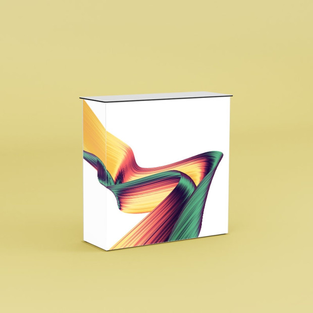 Podium Case ist eine schlichte Messetheke und zugleich ein Transportkoffer, der viel Platz bietet.
