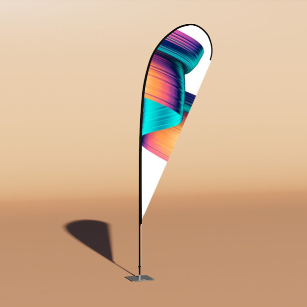 Das mobile Fahnensystem flyflag wird in gerader oder Tropfenform angeboten.